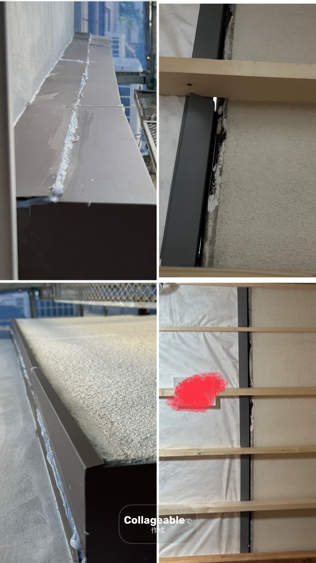ありがとうございます。バルコニーを解体後面が合わなかったらしく、板金処理したようです。今日話すると一枚で覆える板金があったので、上から一枚の板金を被せますと回答がありました。すごく心配です。