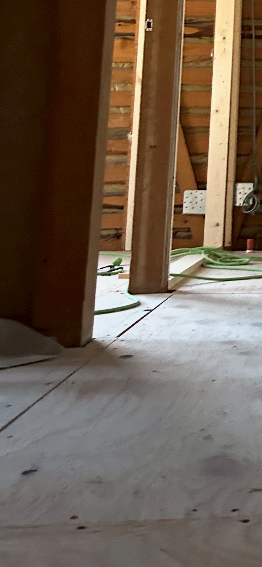 スケルトンリフォーム後、床が傾斜して、膨らんでいるのが足でわかり、工務店へ伝えました。入居者が出てからやり直し工事をしてもらう約束になっています。そんな大した工事にならないと言われましたが、工事中の写真を見返すと24ミリの合板を貼ってるときいてますが、かなり膨れています。