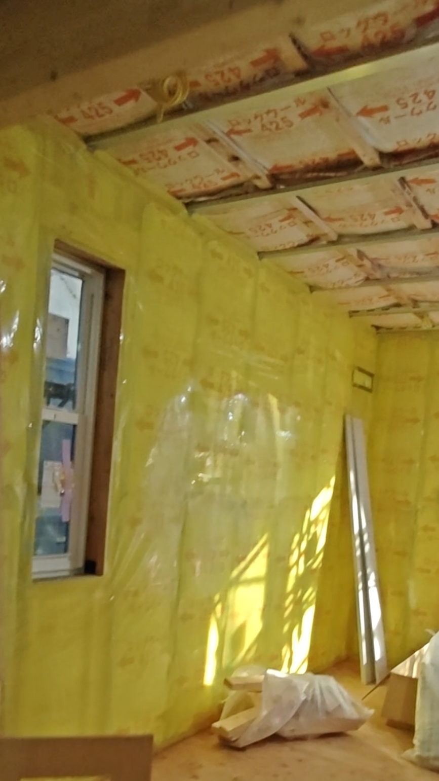 先日見学に行った際、断熱材ロックウールが敷き詰められておりました。