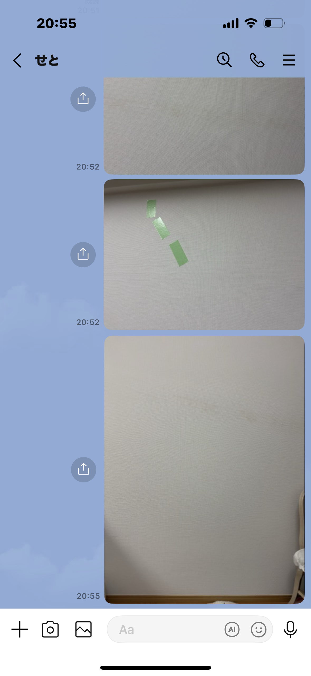 クロスの下地に使用したパテの「剥離」から来る物ではないか?と考えられます。