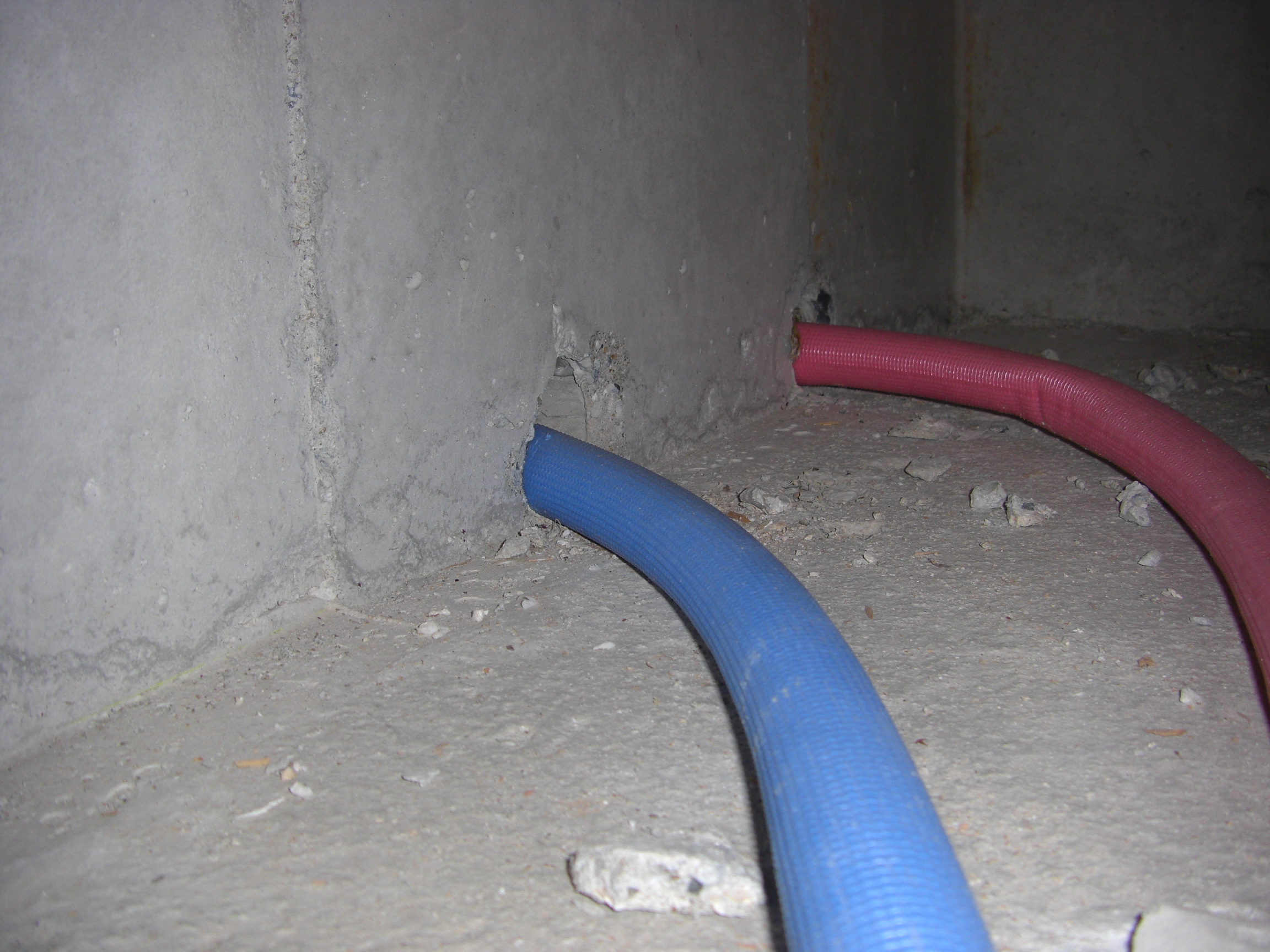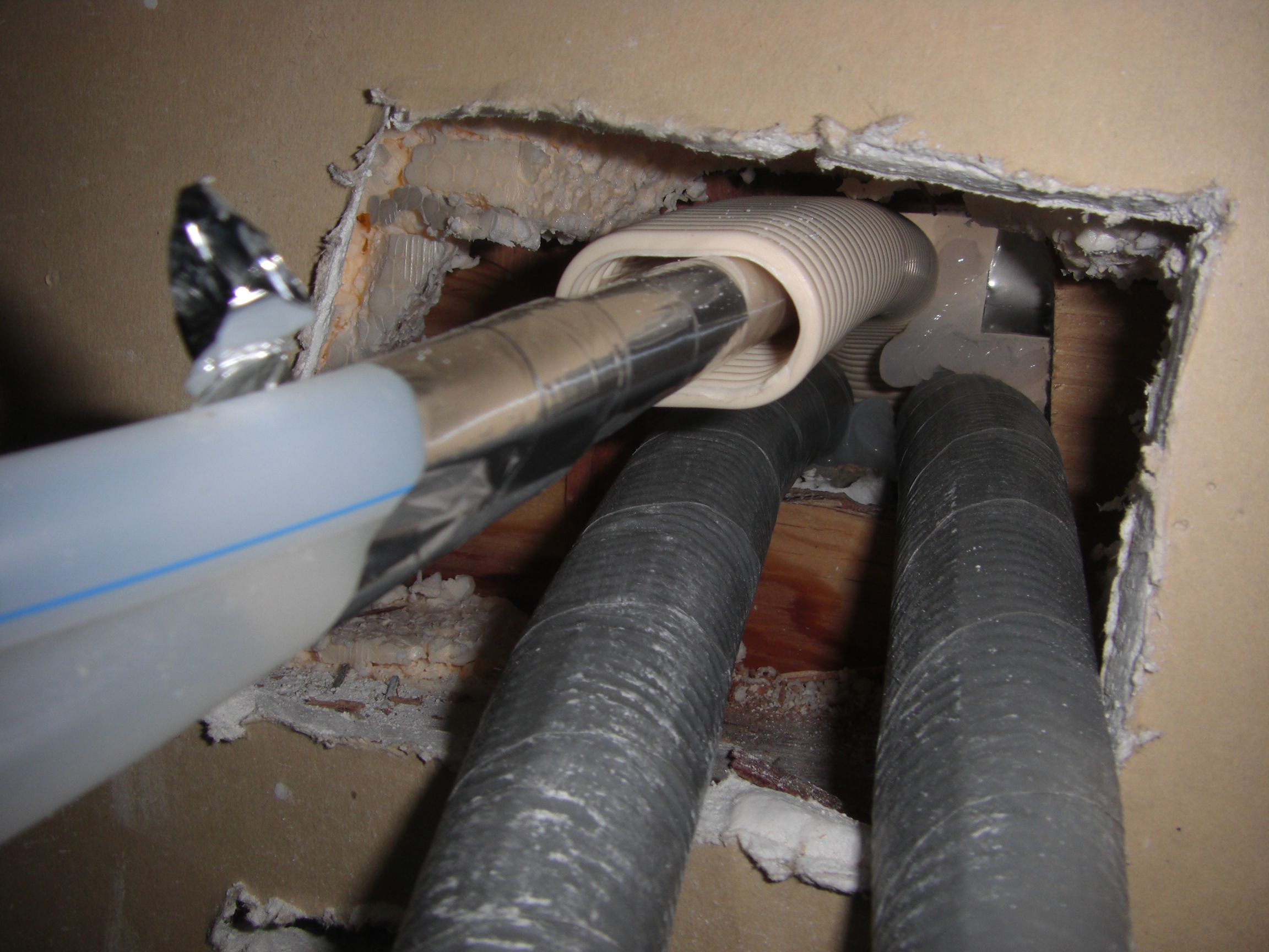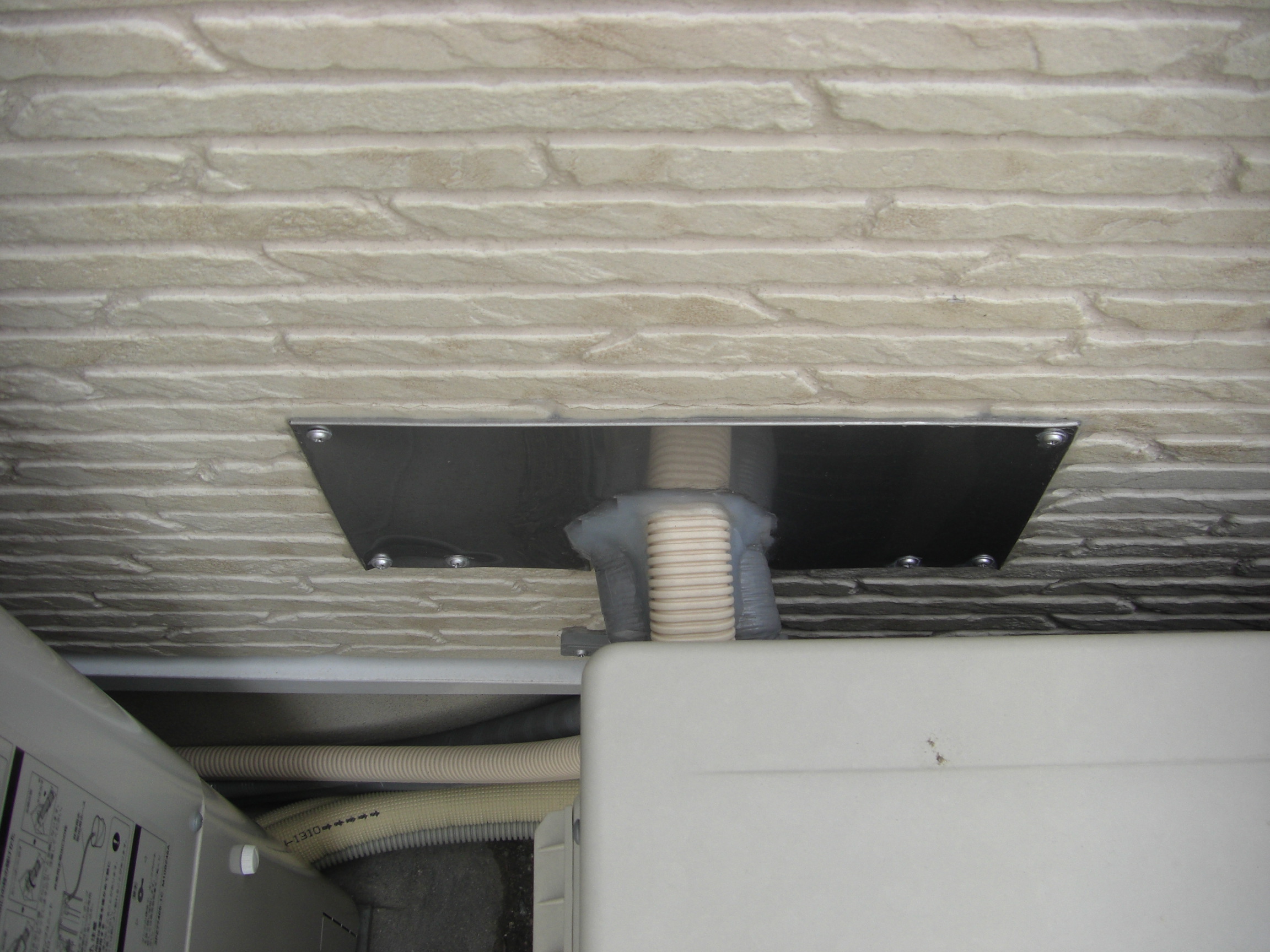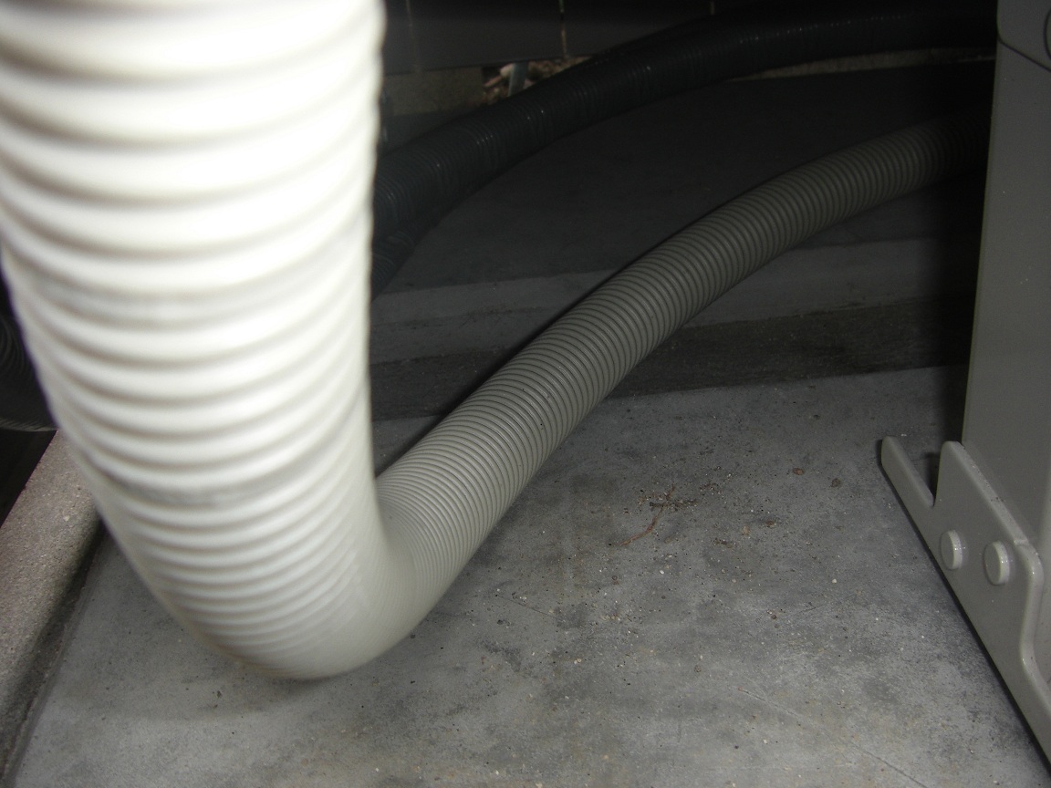 工事前の下見でも「壁に穴を開けて配管を通す」という説明はなかったのですが、壁に穴を開け、基礎にも穴を開けた工事がされていました。